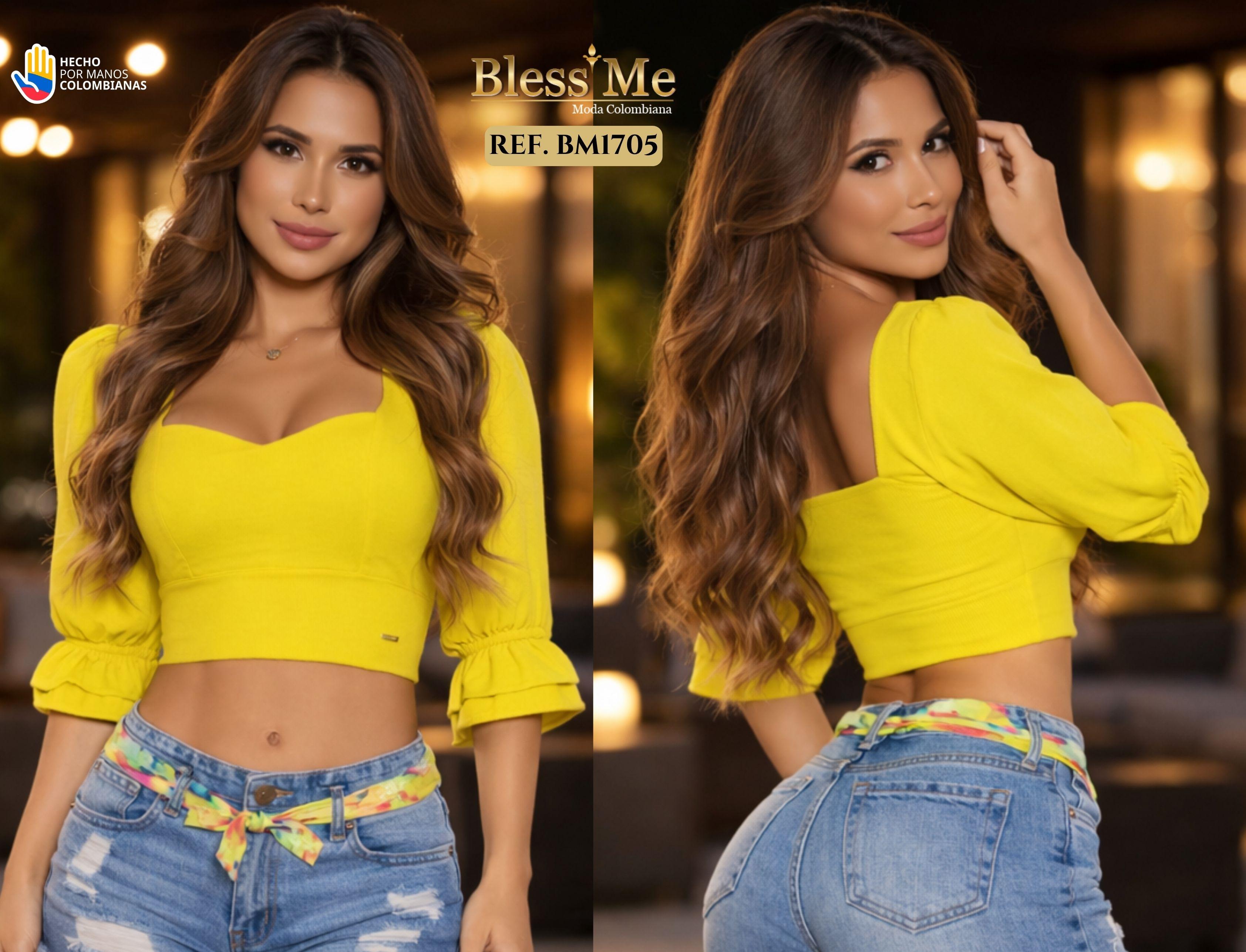 BLUSA BLESS ME REF BM1705 AMARILLA ¡Lleva la frescura y el encanto de la moda colombiana a tu guardarropa con la blusa manga corta de la reconocida marca colombiana Bless Me, disponible en dos deslumbrantes colores: amarillo y rosado! La blusa manga corta de Bless Me es la elección perfecta para resaltar tu estilo con un toque de elegancia y comodidad. Ya sea que elijas el vibrante amarillo o el suave y romántico rosado, esta prenda te hará sentirte hermosa y segura en cualquier ocasión. Características destacadas: