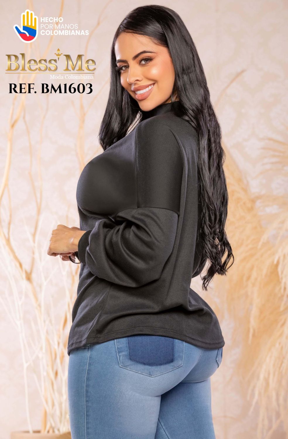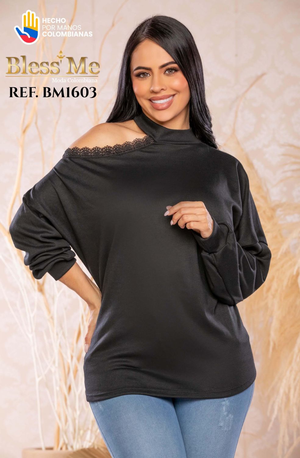 BLUSA LARGA BLESS ME REF BM1603 NEGRA Hermosa prenda fabricada y diseñada en Colombia por la exclusiva marca Bless Me, pensando siempre en la sensualidad y confort femenino, garantizando una prenda de alta calidad, con las ultimas tendencias de la moda actual. Como siempre, te acercamos la mejor ropa colombiana en España y Europa, para que puedas disfrutar de la moda que todo el mundo está buscando. Y también apoyando a los mayoristas consolidados, o para emprendedores apasionados que desean comenzar con su proyecto de venta de ropa colombiana.