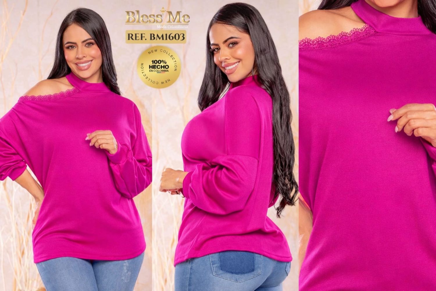 BLUSA LARGA BLESS ME REF BM1603 ROSADA Hermosa prenda fabricada y diseñada en Colombia por la exclusiva marca Bless Me, pensando siempre en la sensualidad y confort femenino, garantizando una prenda de alta calidad, con las ultimas tendencias de la moda actual. Como siempre, te acercamos la mejor ropa colombiana en España y Europa, para que puedas disfrutar de la moda que todo el mundo está buscando. Y también apoyando a los mayoristas consolidados, o para emprendedores apasionados que desean comenzar con su proyecto de venta de ropa colombiana