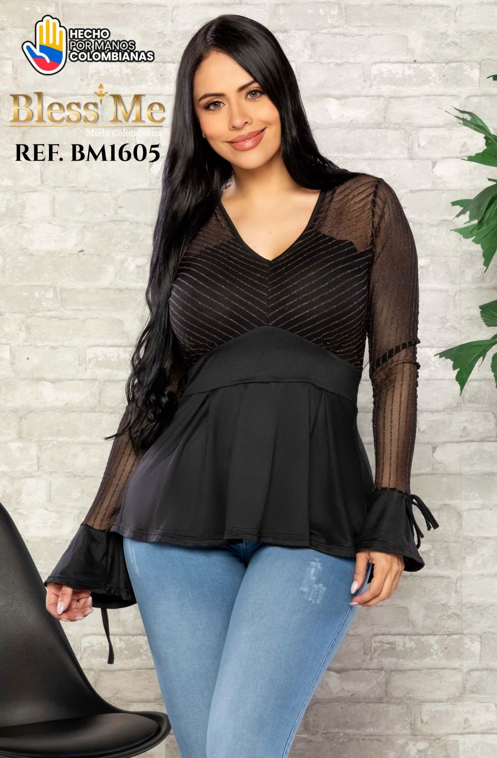 BLUSA BLESS ME REF BM1605 NEGRO CONFECCIONADA CON MATERIALES DE ALTA CALIDAD, ESTA BLUSA TE BRINDA SUAVIDAD AL TACTO Y UN AJUSTE PERFECTO QUE REALZA TU FIGURA. IDEAL PARA LUCIR DURANTE TODO EL AÑO.