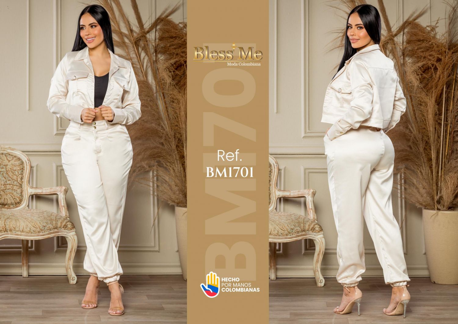 CONJUNTO BLESS ME REF BM1701 SIENTE LA SUAVIDAD Y LA ELEGANCIA CON EL CONJUNTO DE CHAQUETA Y PANTALÓN DE BLESS ME, AHORA DISPONIBLE EN UN DELICADO TONO BEIGE. ESTE CONJUNTO ES SINÓNIMO DE SOFISTICACIÓN Y VERSATILIDAD, DISEÑADO PARA LA MUJER QUE BUSCA UN ESTILO ATEMPORAL CON UN TOQUE DE FRESCURA.