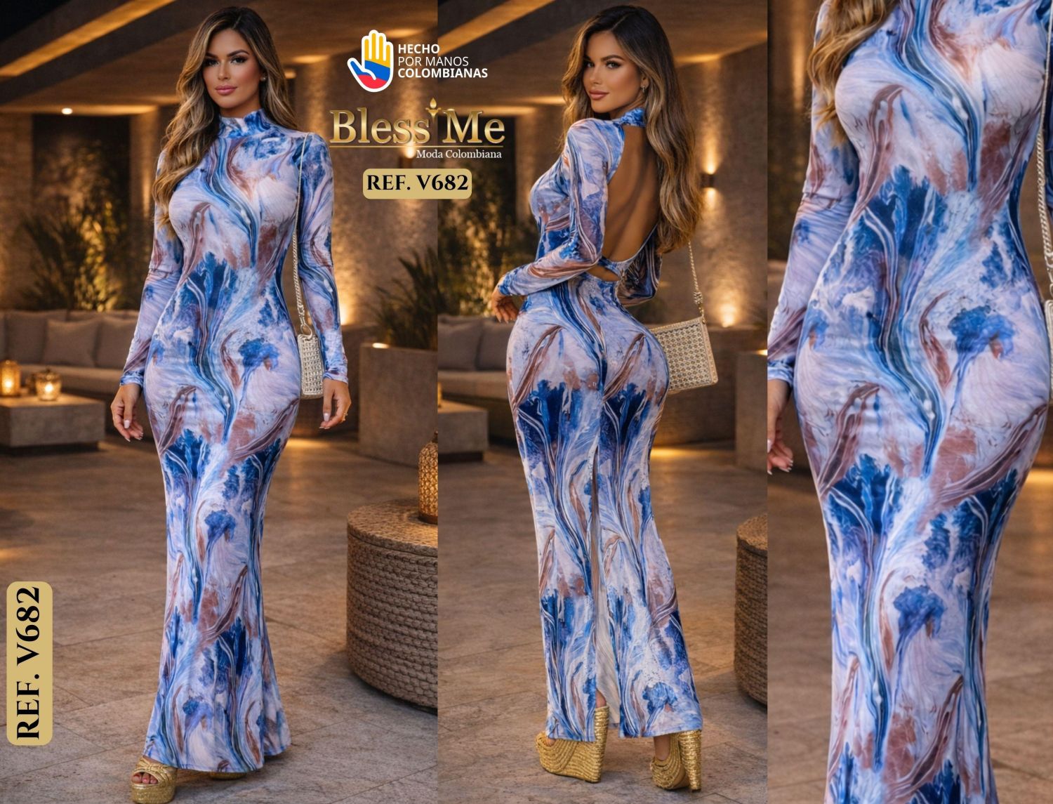 VESTIDO LARGO DE FIESTA BLESS ME V682 LUCE SOFISTICADA Y MODERNA CON ESTE IMPRESIONANTE VESTIDO LARGO EN COLOR AZUL CON UN DELICADO ESTAMPADO.SU DISEÑO CON MANGA LARGA LO CONVIERTE EN UNA OPCIÓN IDEAL PARA OCASIONES ELEGANTES, TANTO DE DÍA COMO DE NOCHE. CONFECCIONADO EN MATERIALES DE ALTA CALIDAD, ESTE VESTIDO SE ADAPTA CÓMODAMENTE A TU FIGURA,DESTACANDO POR SU CAÍDA FLUIDA Y DETALLES CUIDADOSAMENTE DISEÑADOS QUE LE OTORGAN UN AIRE REFINADO Y ATEMPORAL. PERFECTO PARA QUIENES BUSCAN COMBINAR ESTILO Y COMODIDAD, ESTE VESTIDO DE BLESS ME SERÁ TU ALIADO PARA ROBAR MIRADAS EN CUALQUIER EVENTO. ELEVA TU ESTILO Y DESLUMBRA CON CADA PASO.