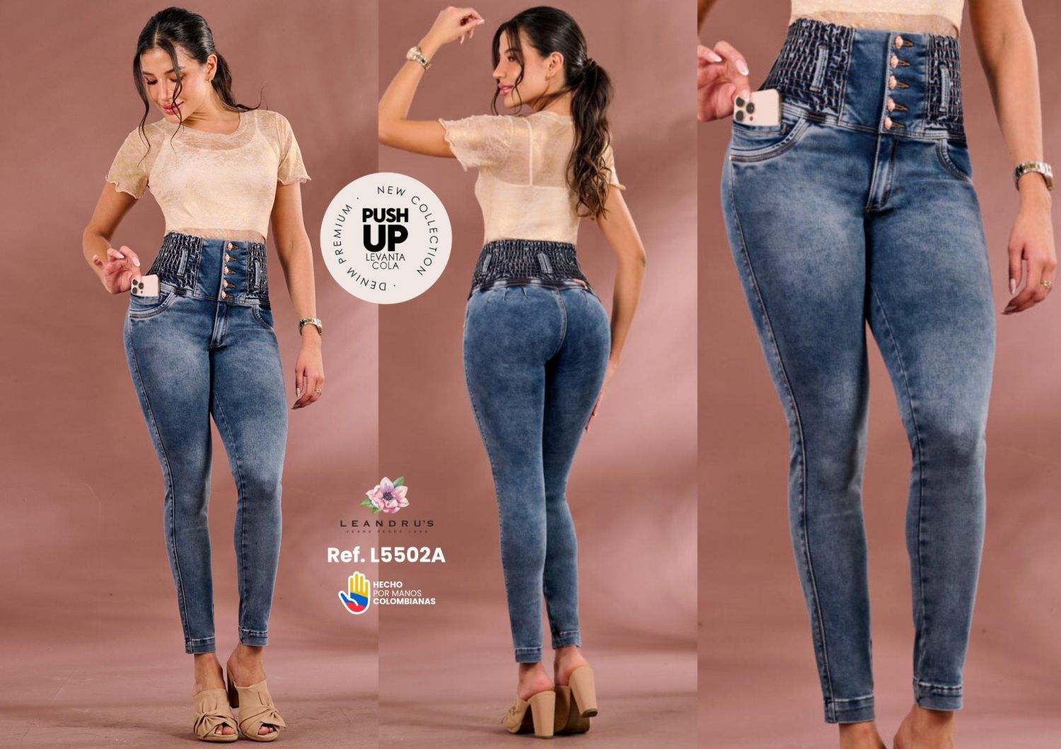 JEANS LEANDRUS L5502A Ideal para quienes desean moldear su figura y mantener la comodidad durante todo el día, este jean levanta los glúteos y estiliza las piernas gracias a su corte skinny y tela flexible.