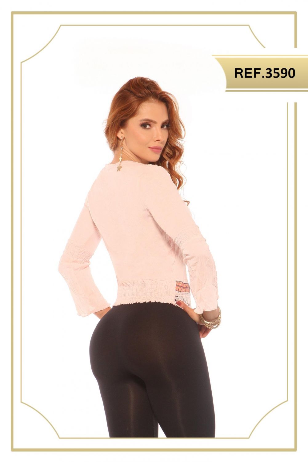 BLUSA VIKATS REF 3590 Blusa manga larga Hermosa blusa de manga larga, con un bonito cuello en forma de V terminado en dos cordones, un precioso encaje en la parte inferior en la prenda y un bonito estampado tanto en el escote como en la parte del abdomen. Vístete linda y atrae todas las miradas. Diseñada y fabricada con telas de excelente calidad, 100% Colombianas Esta prenda está disponible en rosado, negro, rojo y blanco. Productos en la misma categoría