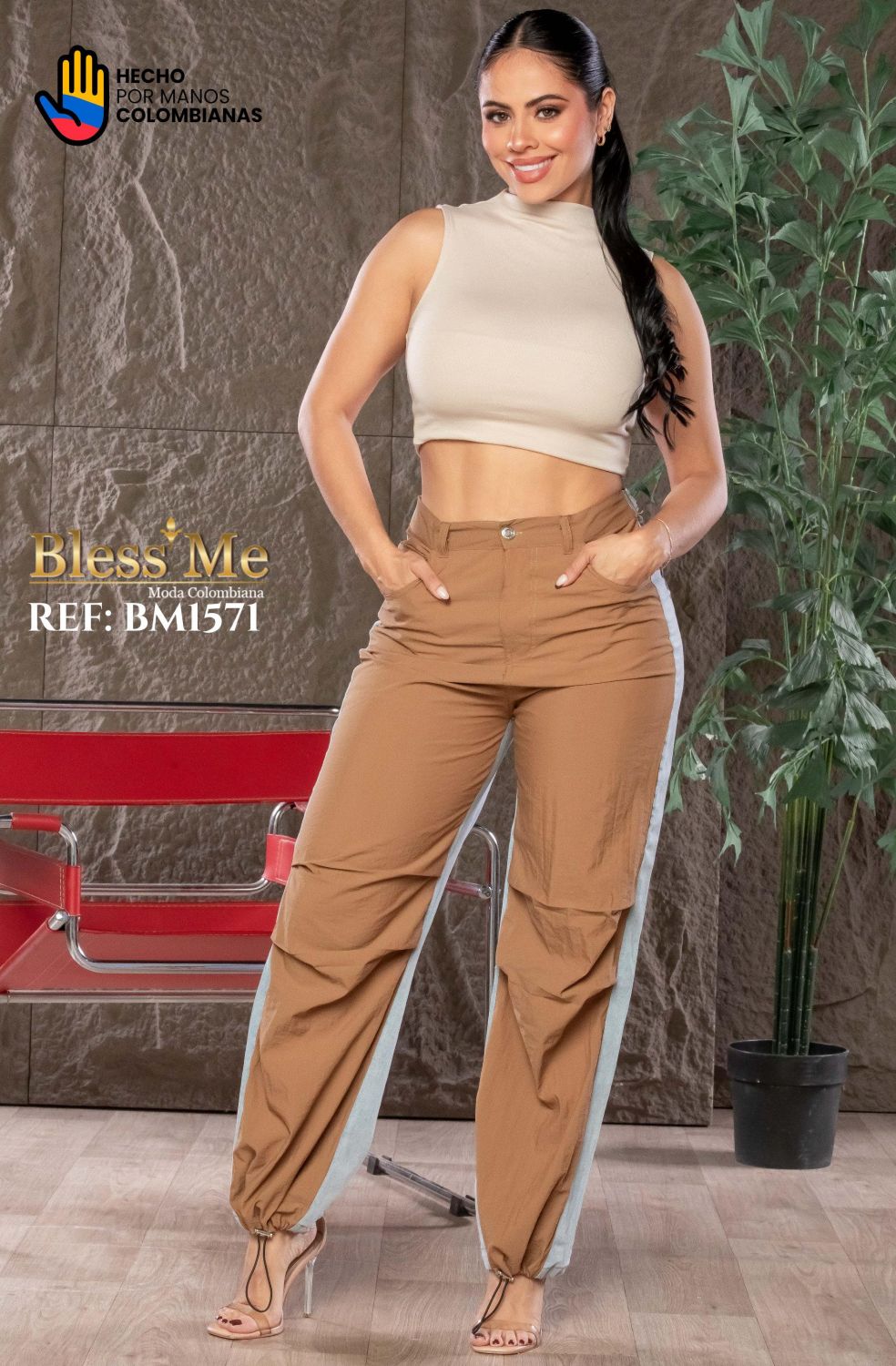 PANTALON BLESS ME BM1571 Este pantalón bicolor es una apuesta arriesgada y ganadora. Combina denim celeste con paneles en tono camel para ofrecer un look auténtico, moderno y con mucha actitud. Su silueta holgada con elástico en los tobillos permite una caída fluida que estiliza sin perder comodidad. Perfecto para quienes aman destacarse sin esfuerzo y convertir cualquier conjunto en una declaración de estilo.
