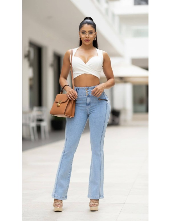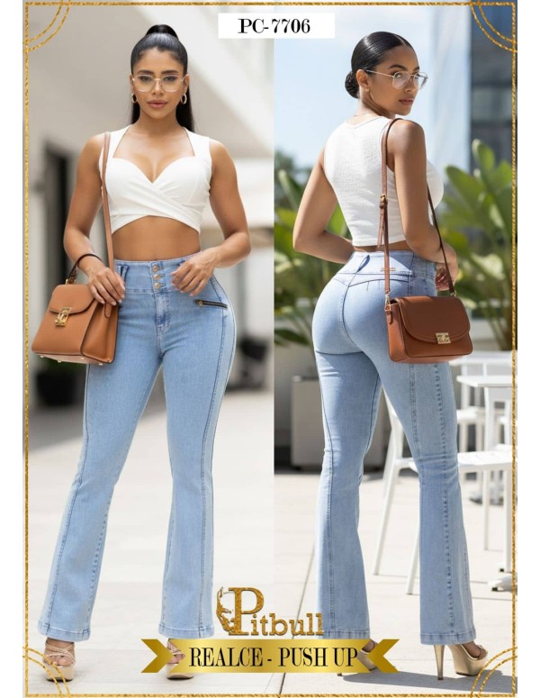JEANS PITBULL REF PC7706 Un jean que combina lo clásico con lo moderno. El modelo PC7706 de Pitbull destaca con su bota campana, cremallera decorativa y un tono azul claro que resalta la figura. Productos en la misma categoría