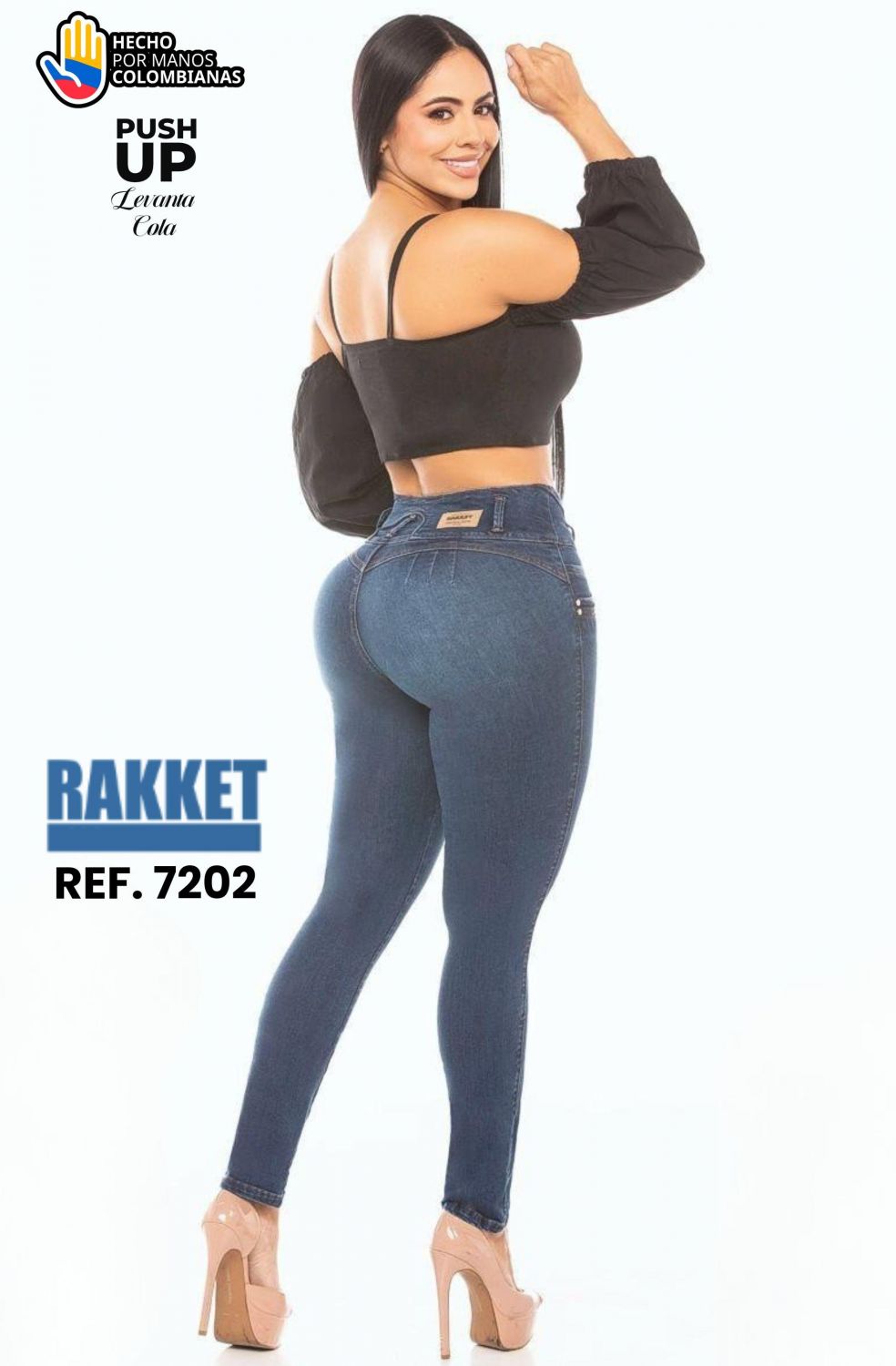JEANS RAKKET REF 7202 Jean Colombiano Levantacola Ref. 7202 – Skinny Push Up El Jean Colombiano Levantacola Ref. 7202 está diseñado para moldear, definir y resaltar tu figura con un ajuste firme y favorecedor. Su silueta skinny se adapta perfectamente al cuerpo, estilizando las piernas y marcando la cintura con elegancia. Confeccionado en denim de alta calidad con excelente elasticidad, brinda comodidad durante todo el día sin perder estructura. Su tono azul clásico con ligeros desgastes aporta un estilo moderno y versátil, ideal para looks casuales o más sofisticados. Incorpora sistema push up levantacola, que realza los glúteos de forma natural gracias a su diseño estratégico en la parte posterior. La pretina de tiro alto con doble botón ayuda a controlar el abdomen y definir la silueta, creando un efecto más estilizado. Un jean pensado para mujeres que buscan seguridad, curvas definidas y un ajuste que realmente se note. Características destacadas: • Jean colombiano levantacola. Perfecto para quienes desean un jean levantacola colombiano con ajuste firme, cómodo y un efecto visual que transforma la figura desde el primer momento. Productos en la misma categoría