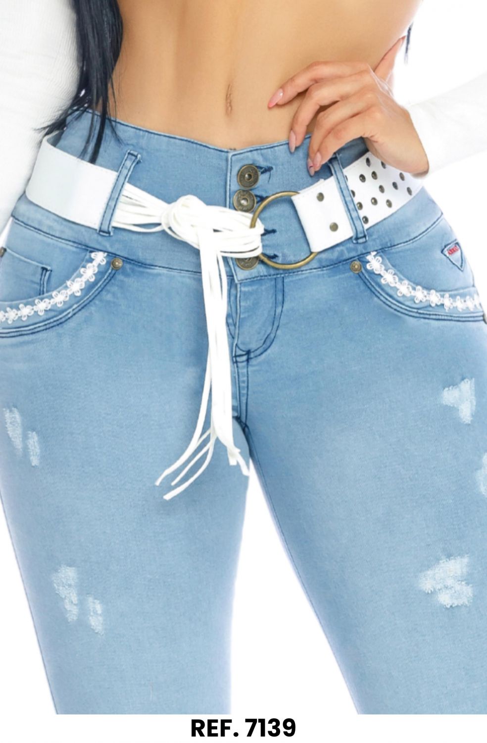 JEANS RAKKET REF 7139 SIEMPRE ESTAMOS BUSCANDO LAS ÚLTIMAS TENDENCIAS EN MODA LATINA, COMO ESTA PRENDA, QUE LLEVA EL EXCLUSIVO Y CONOCIDO SISTEMA EN JEANS PUSH UP O LEVANTACOLA, EL CUAL MOLDEA Y ESTILIZA LA FIGURA FEMENINA. TALLA SUJETA A INVENTARIO Productos en la misma categoría