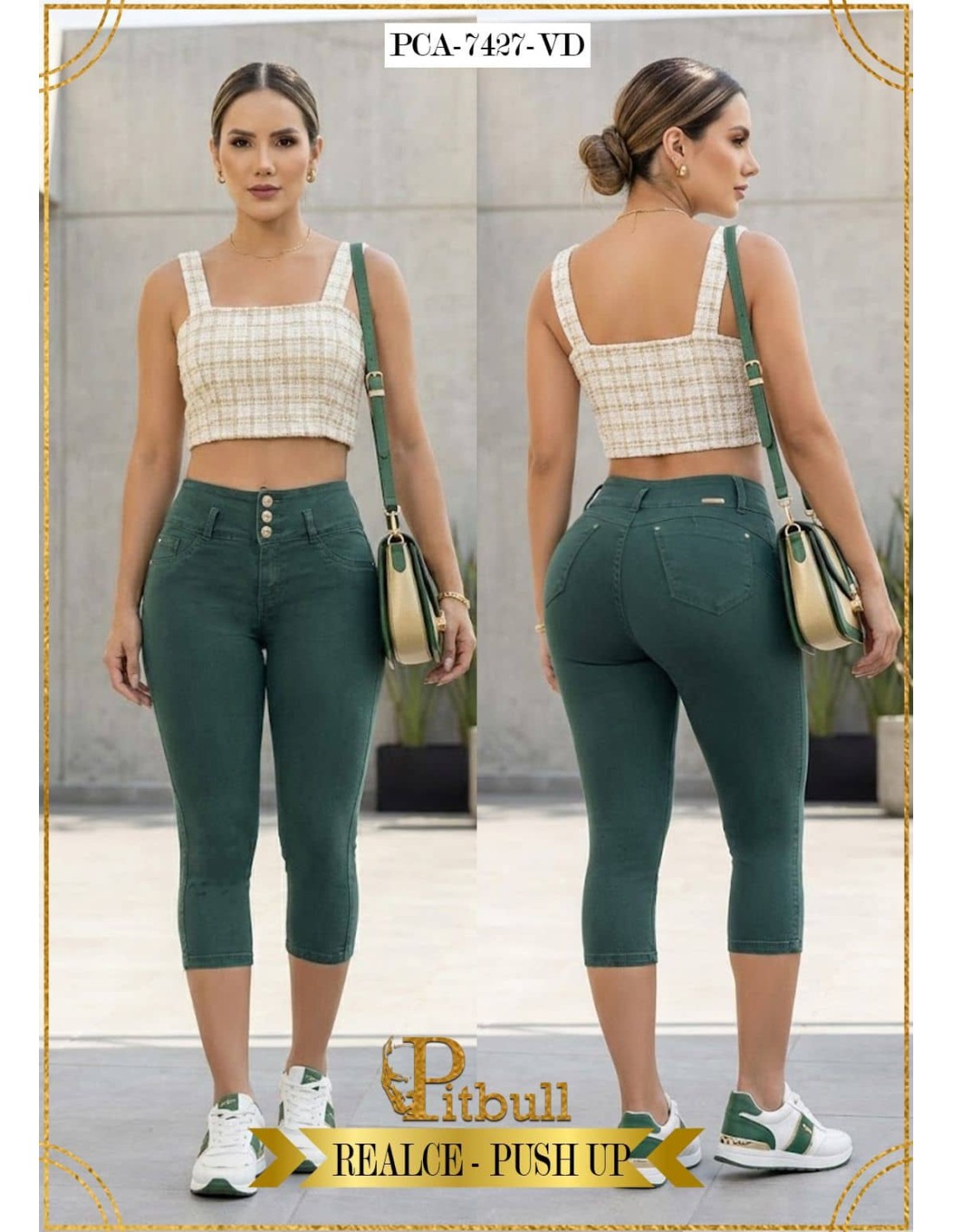 JEAN PITBULL REF PCA7427 PANTALÓN CAPRI PITBULL PCA7427 LA MEJOR PRENDA DEL MERCADO. ESTE PANTALÓN BRINDA UN EXCELENTE PUSH Y CONTROL DE CINTURA, PRUEBA A VERTE ENCANTADORA CON EL PCA7427 DE PITBULL.