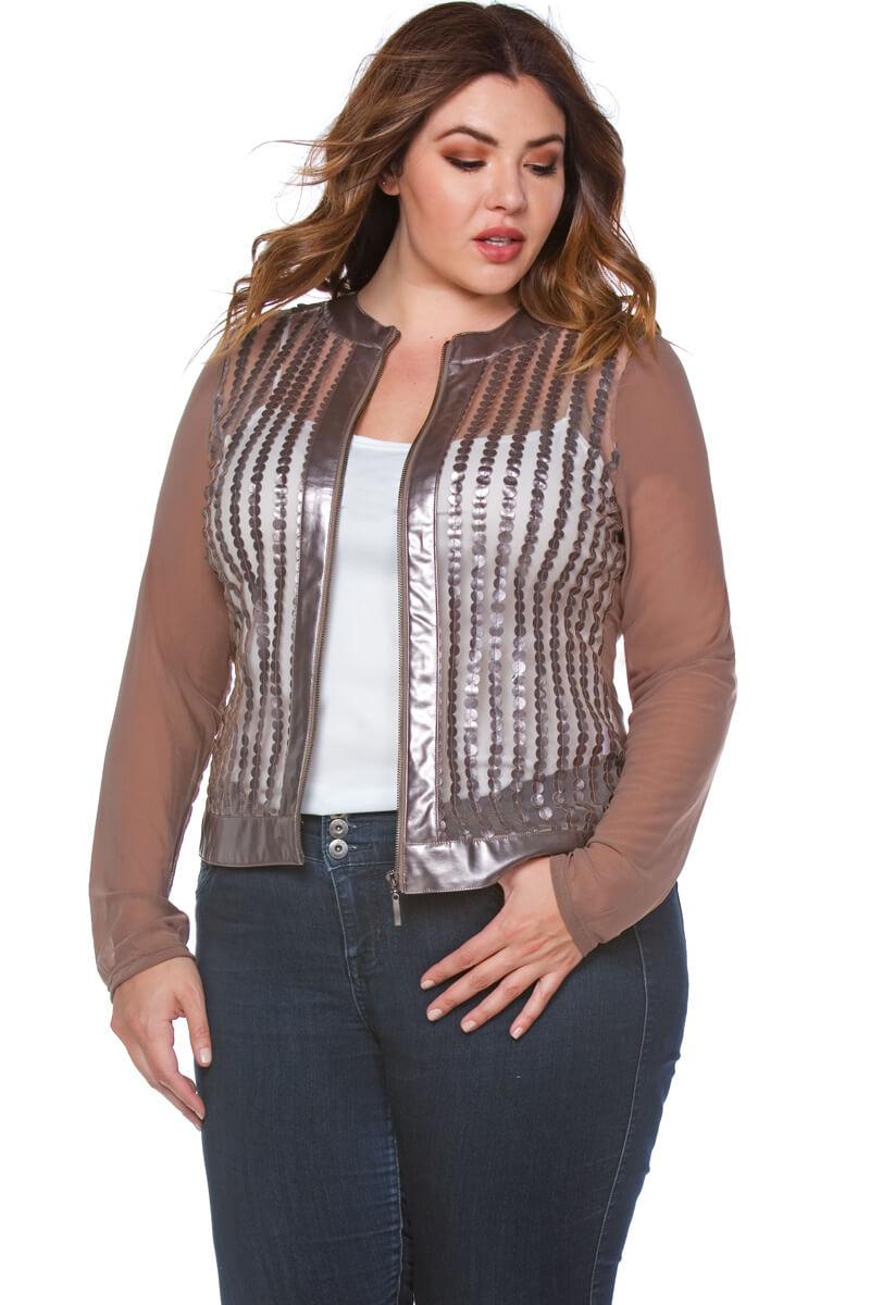 CHAQUETA DE MODA 3027CX HERMOSA CHAQUETA DE MANGA LARGA TRANSPARENTE,CON UN ABROCHADO DE CREMALLERA, UN CUELLO REDONDO Y UN DECORADO DE LENTEJUELAS POR TODA LA PARTE DELANTERA. LUCE SEXY Y MODERNA EN TODO MOMENTO.DISEÑADA Y FABRICADA CON TELAS DE EXCELENTE CALIDAD,QUE SOLO PUFBARCELONA PUEDE OFRECERTE. ESTA PRENDA ESTÁ DISPONIBLE EN DIVERSIDAD DE TALLAS Y EN UNA AMPLIA GAMA DE COLORES NEGRO,GRIS Y MARRÓN Productos en la misma categoría