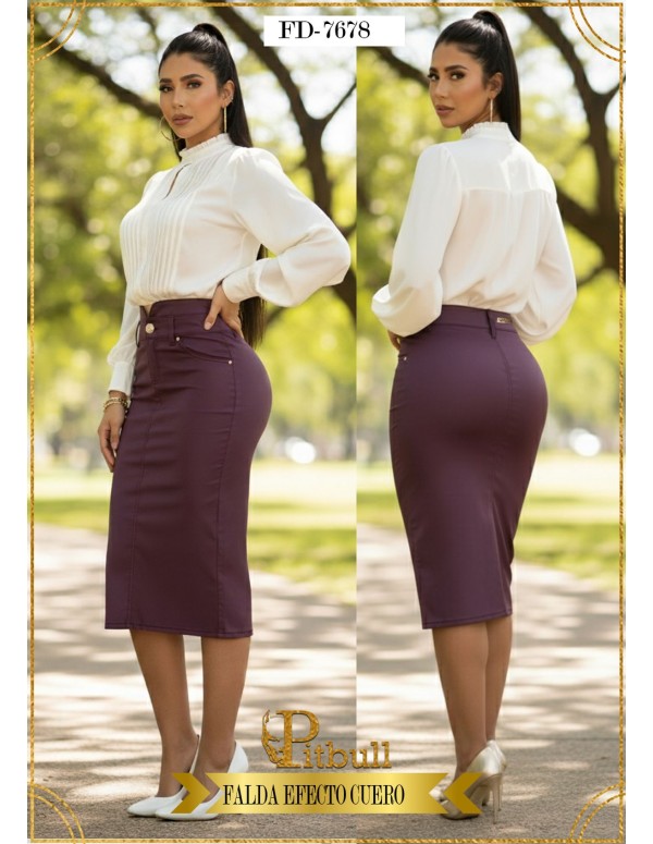 FALDA EFECTO CUERO PITBULL FD7678 DESTACA TU ESTILO CON LA FALDA EFECTO DE PITBULL JEANS.SU DISEÑO ELEGANTE Y AJUSTE FAVORECEDOR RESALTAN TU FIGURA CON SOFISTICACIÓN Y COMODIDAD.