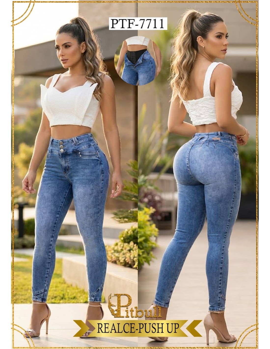 JEANS CON FAJA EN CINTURA PITBULL PTF7711